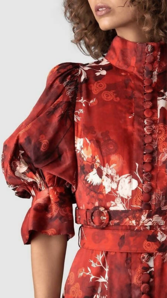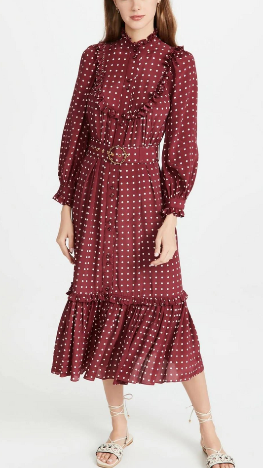 Zimmermann - Swing Midi Dress - Burgundy / Cream Dot
