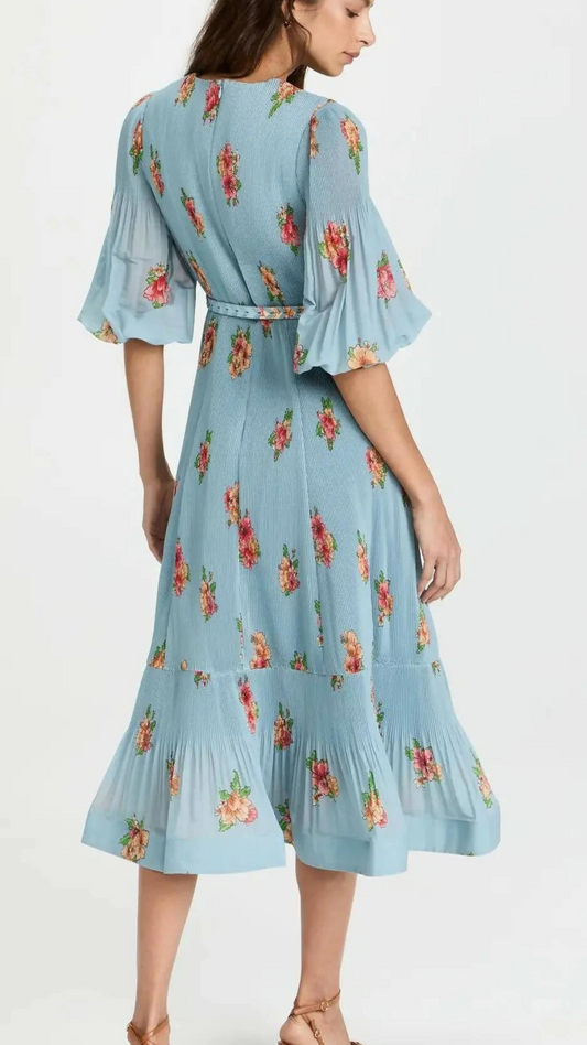 Zimmermann - Pleated Midi Dress - Blue Floral