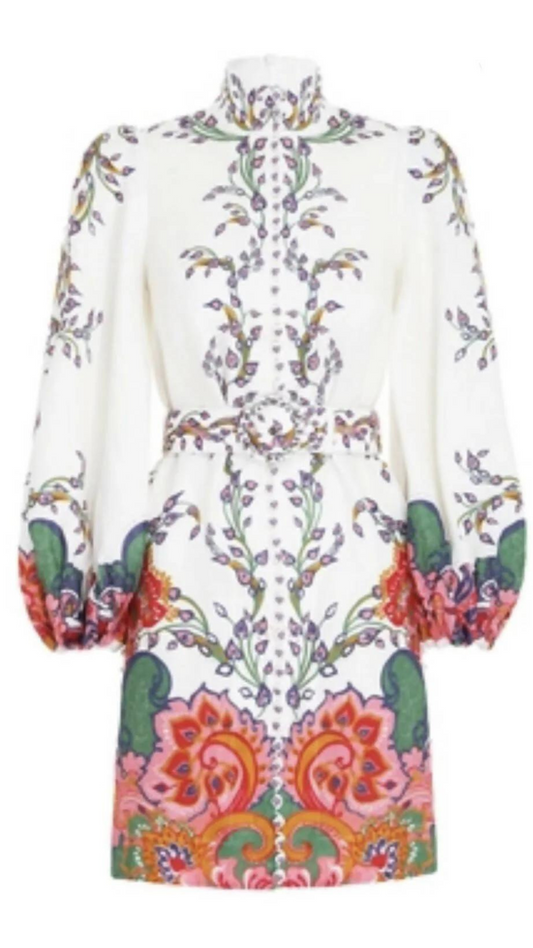 Zimmermann - Postcard Mini Dress Swirl Floral Coral