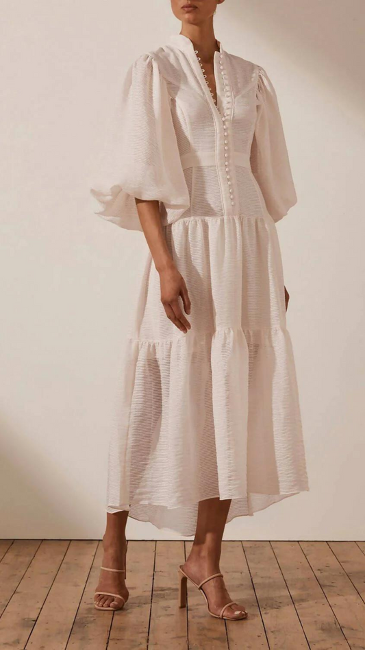 Shona Joy - Charlotte High Neck Midi Dress - Ecru