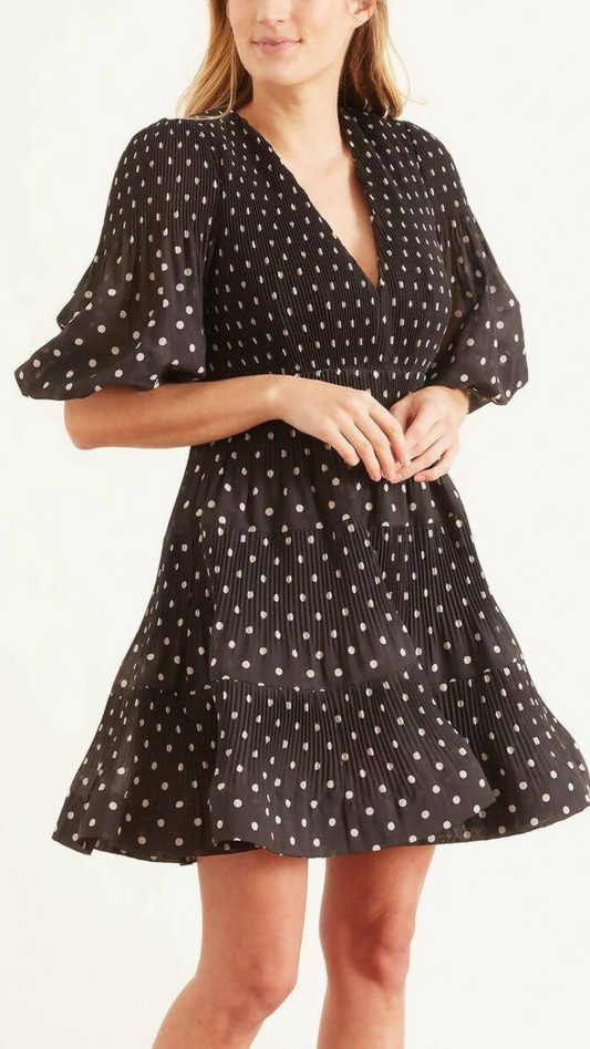 Zimmermann - Pleated Long Sleeve Mini - Black w/ Pearl Dot
