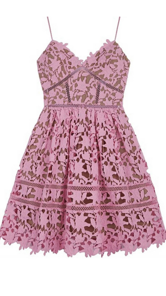 Self Portrait - Bubble Gum Azaelea Lace Mini Dress