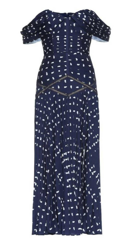 Self Portrait - Off-Shoulder Printed Crepe Dress - Navy